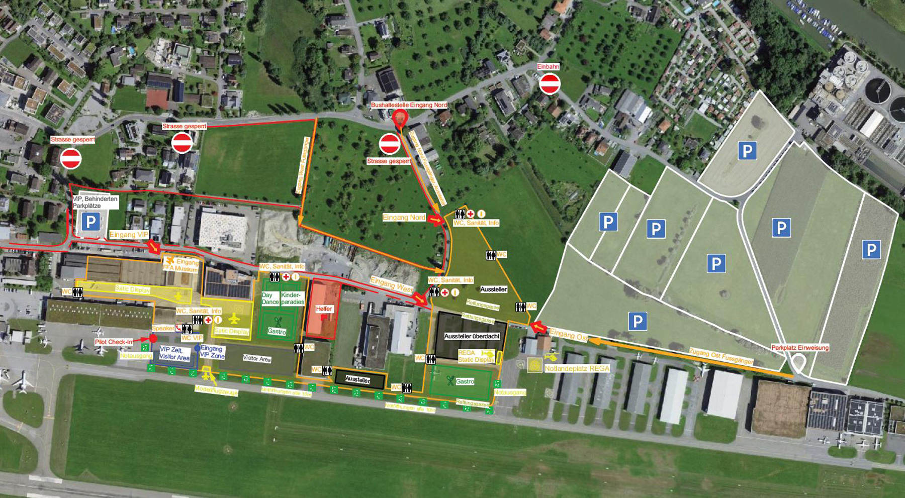 - Vom VIP-Eingang führt ein direkter und kurzer Weg zur speziell abgegrenzten VIP-Zone, welche beste Aussicht auf das Flugfeld bietet.
