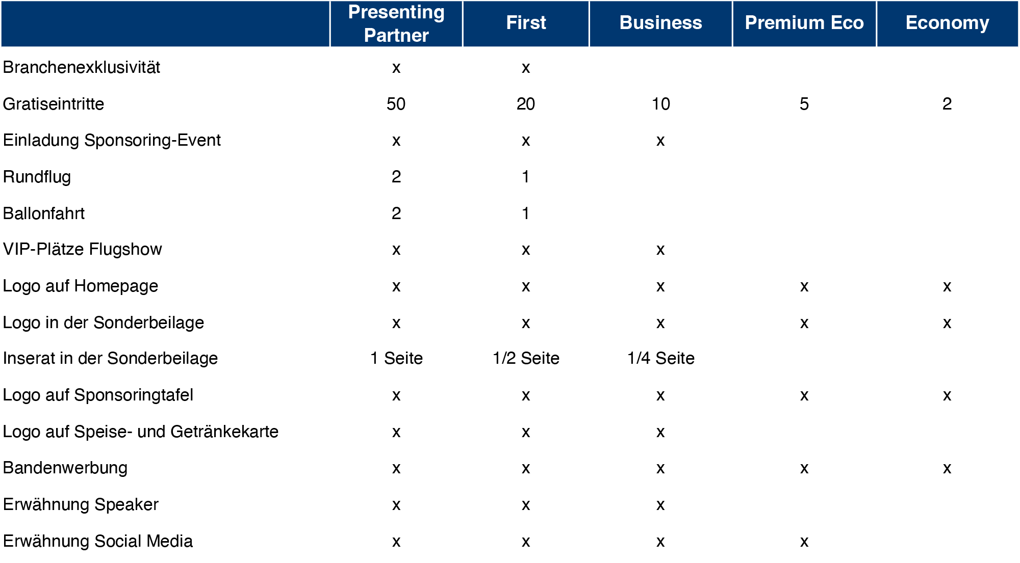 | Sachsponsoring | nach Absprache |